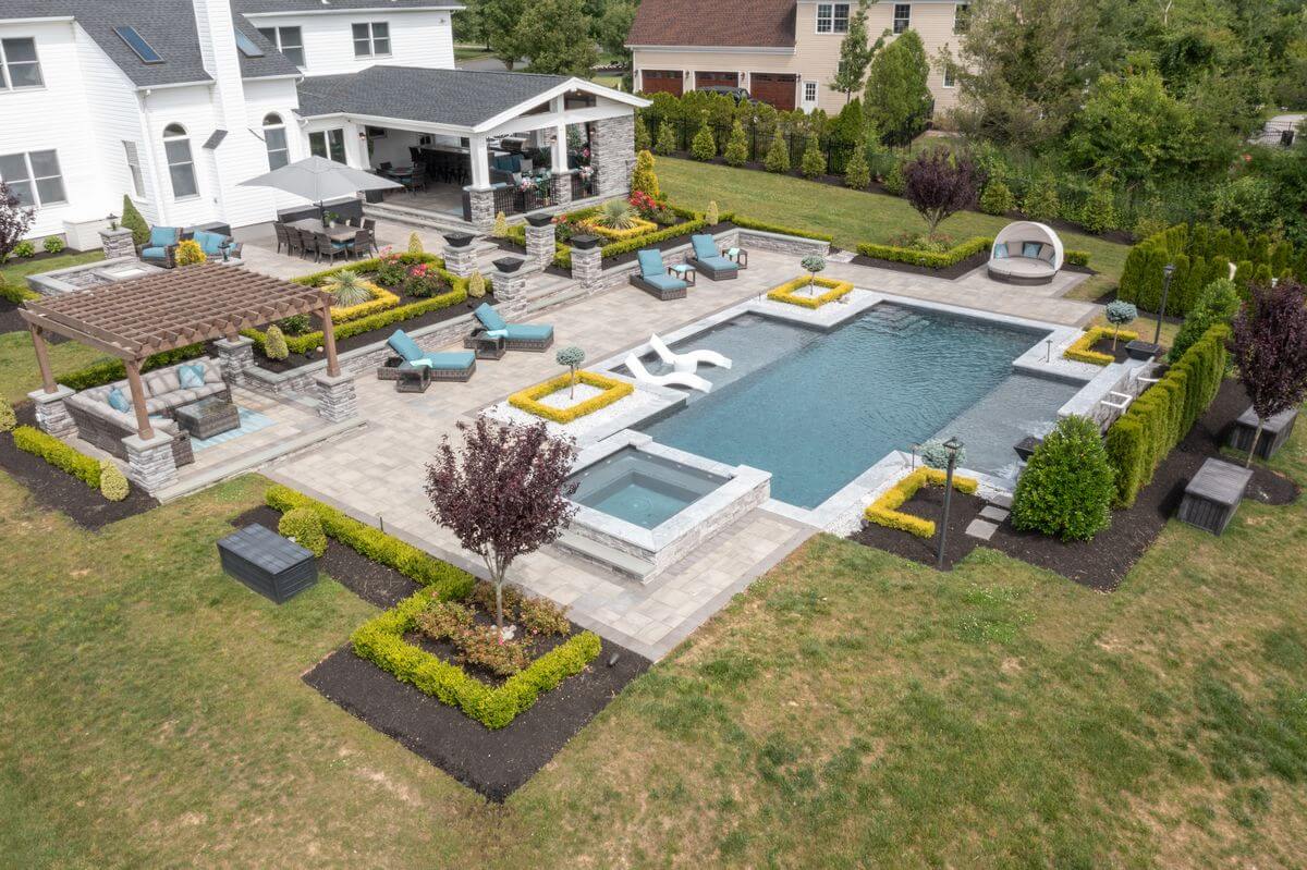 We design and install custom outdoor spaces across Monmouth County. From travertine pool patios in Manalapan to fire pits in Colts Neck and lawn care in Rumson, every project is tailored to fit the home. Our local expertise ensures durable, stylish landscaping that blends perfectly with each property’s unique character.